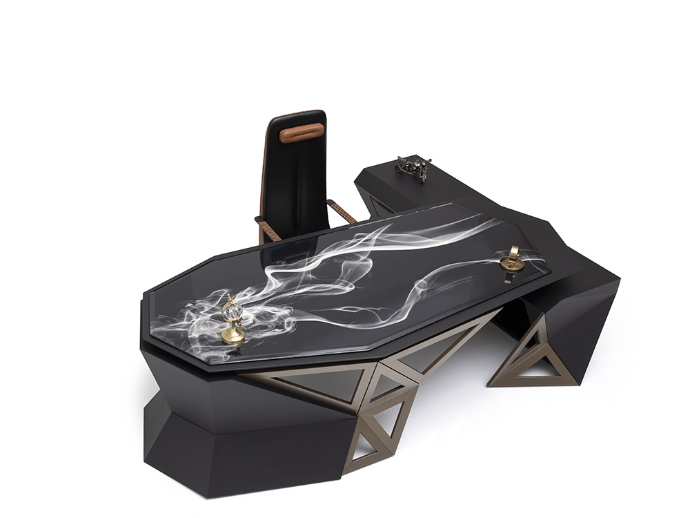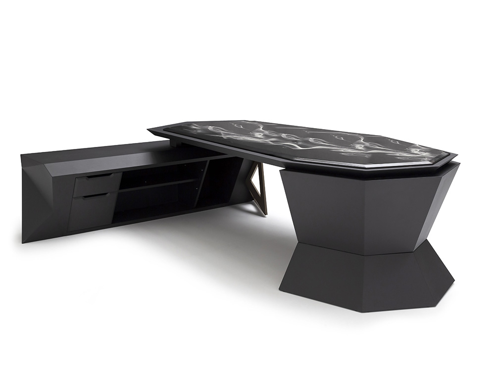 Asaletin mobilyaya dönüşmüş haliyle Gravity, dört duvarın sıradan çizgilerinin arasında asil bir asimetri. Özel tasarım geometrik krom ayaklar, ayakların üzerinde yükselen ağırbaşlı bir tasarım. Çokgen yapısı ile özgünleşen masa yüzeyini destekleyen etajer yardımcısı mekanı bölerken alanı daraltmıyor. Masa gibi çokgen gövdeye sahip olan dolap ise tek parça gözükmesi için kulpsuz tasarlandı. Beraberinde konfigüre edilmiş serinin diğer ekipmanlarıyla ofisinizde şık farklılıklara imza atın.
